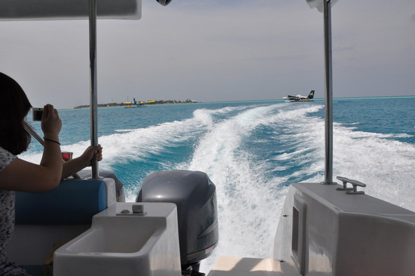 AV的水飞是落在海中央,一个平台,然后有船来接。第一天到还好,风平浪静。最后一天离岛从主岛到平台再爬上飞机,就这点路差点没把胃吐出来。所以水飞不是那么好坐的。