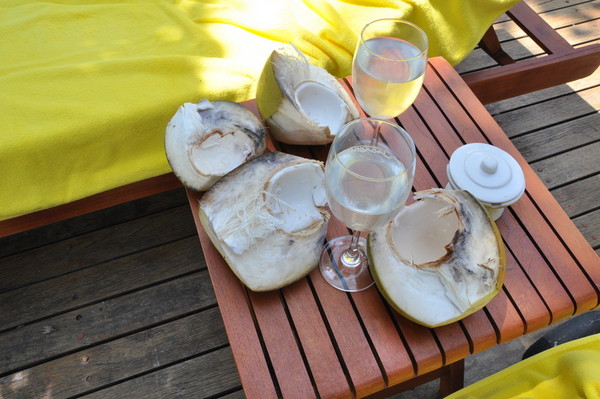在岛上有很多椰子树,椰子快成熟会掉下来,小黑会把椰子砍下来,防治砸到客人,如果你看到他们拿椰子,你可以要,我就遇见了,要了两个椰子,给了两美元,我代理跟我说捡便宜捡到马尔代夫了