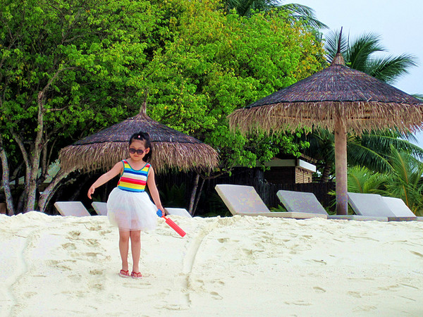 再说说航班,去马代一般说来有新航、马航、斯航、阿航、卡航、南航、美佳、东航、川航,由于带小朋友出行,航班时间的长短、舒适性都非常重要,综合比较几家航空公司的,我最终将目标选定在新加坡航空。选择新航最大的问题是价格高,询了几家的票价最终决定从代理那里买了新航的团队特价票,优点是便宜,缺点是不能改签、出票晚,不过三个人能省1w左右,还是义无反顾选了。而且航班的时间也非常好,到马累的时间是中午11点,不用浪费一晚住马累。还想说一下的是新航的服务,真的是特别适合带孩子的童鞋,一是可以优先登机,二是优先为小朋友提供儿童餐(其实也就是装饮料的杯子比较卡通),还有就是每个小朋友都会得到一份新航的礼物。另外还有就是樟宜机场非常漂亮,T2航站楼里面很多供消遣的设施,转机时间再长都不会无聊。不过由于我的功课做的不充足,还是有了点遗憾的,那就是本来以为特价票只有4晚的行程,就稀里糊涂地定了,后来不断地看见新航特价有5晚、6晚的机票,真是悔不当初,坐十几个小时飞机去的地方怎么能就待4晚呢!最后事实证明真的是相当遗憾啊!