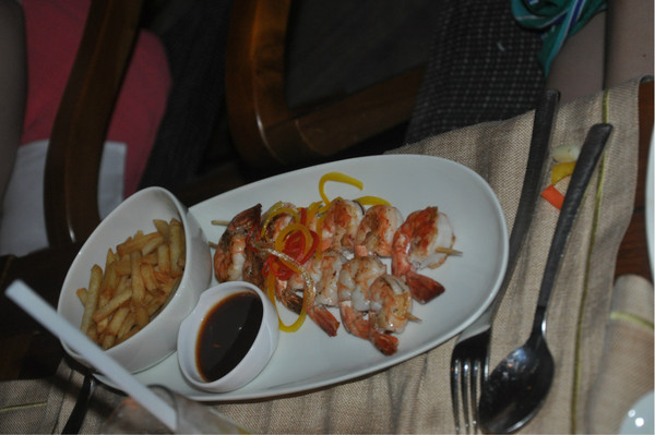 主餐厅manta,一天三顿自助都在这个餐厅,品种每天都会有更新,一入座就会有小黑来问需要什么酒水,晚上有室外烧烤、餐后甜点、冰淇淋可以自取。各种啤酒、红白葡萄酒、起泡酒都免费,我们有天不小心点了要付费的香槟,立马就有一位美女经理过来向我们解释说香槟是收费的建议我们换个起泡酒,感动的哗啦啦的~~食物没怎么拍,我们都是吃货,坐下就吃的那种,嘻嘻。拍这张照片的时候我就在想,盛冷餐的容器是不是每天结束会盖起来呢……