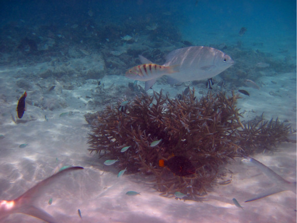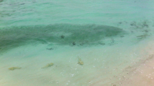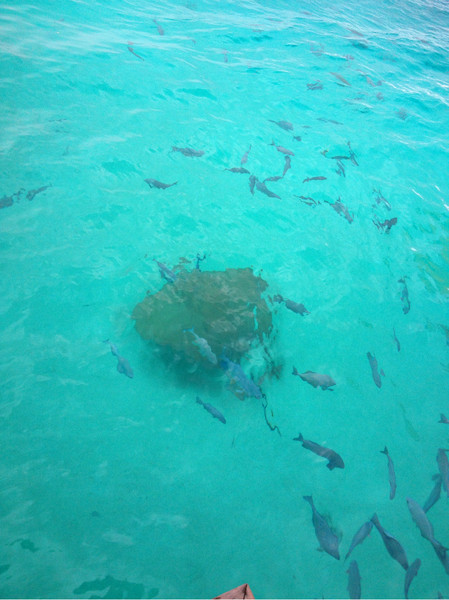 水屋外浮潜,水下都是白色透明的鱼。因为是旱鸭子,没能游的远些,不过就这些鱼也够我兴奋许久了!带点面包屑下去所有的鱼都会围过来,一点都不怕人。