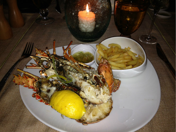 菜单上的主菜除了龙虾都免费,但是既然去了,我和老公还是想尝尝龙虾味道的,于是各点了一份,32刀/份,味道么没有想象的那么好,我还是比较喜欢吃生的蘸芥末,重口味啊,哈哈!