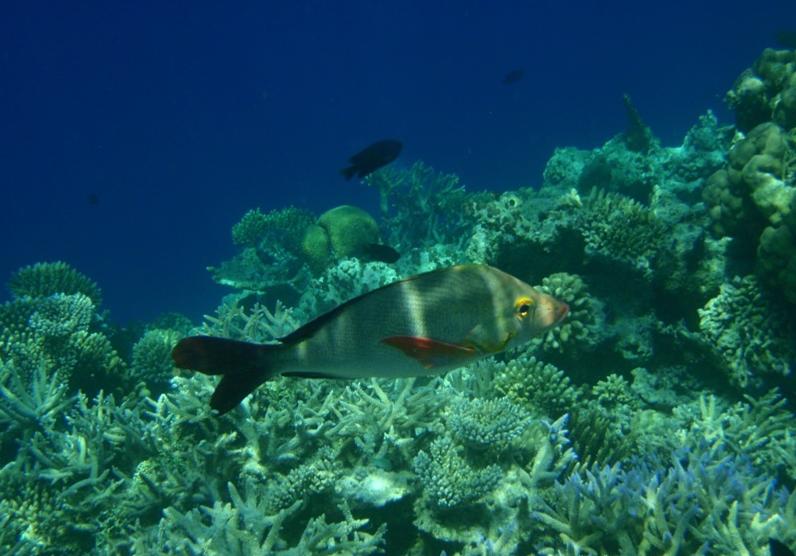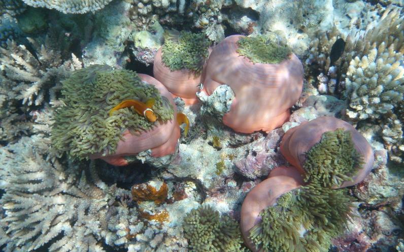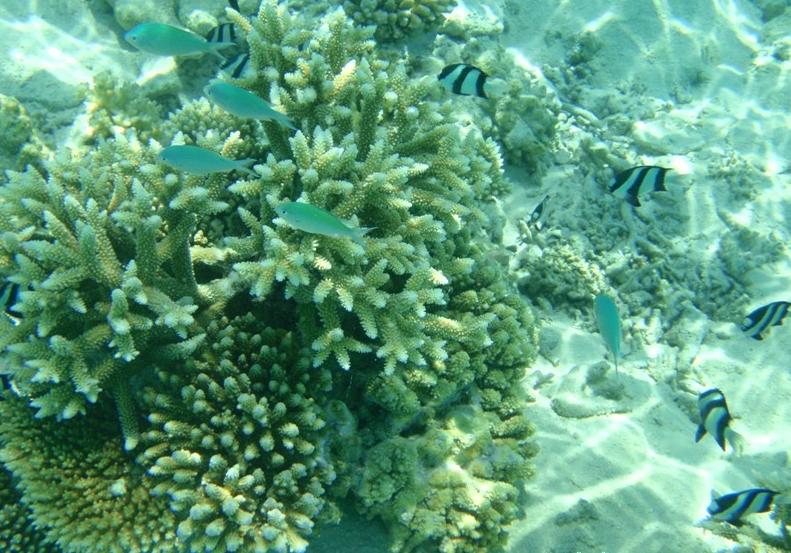 下面这两张是在水屋附近浮潜拍的,水非常浅。