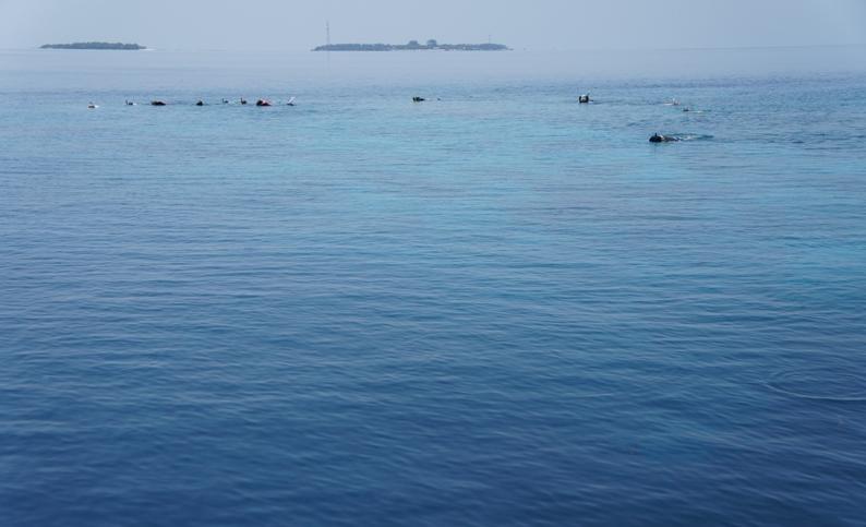 由领队带着在海沟附近浮潜,我们这一队里,欧美人都不穿救生衣