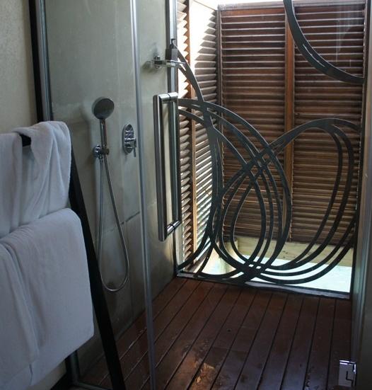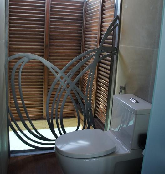 洗浴室挺大,洗澡、卫生间是是半封闭的,都可以看到下面的鱼。