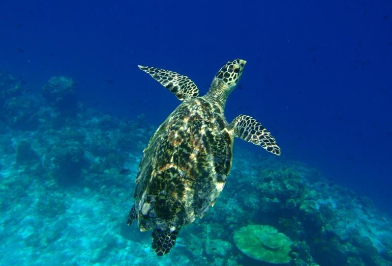 这里虽然有死珊瑚,但却见到了大海龟,