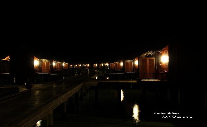 马尔代夫夜晚的码头很静谧,不一会儿小黑发动了快艇,载着我们驶向Anatara岛去了,快艇的汽油味很重,