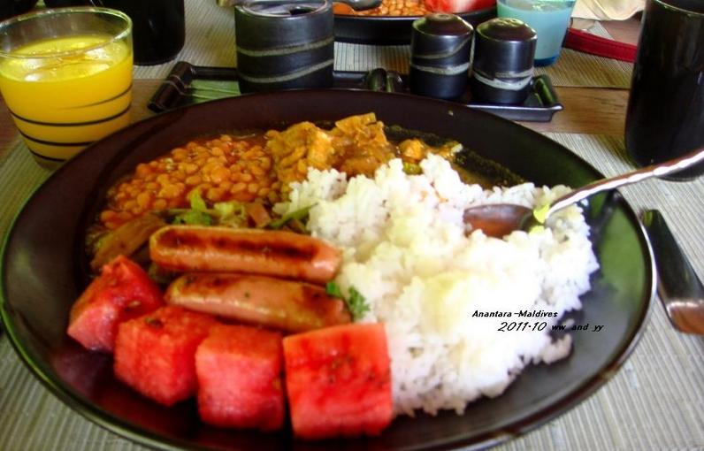 沿途遇到很多外国人和面带笑容的小黑,我们都相互打了招呼,今天早上才发现自助餐里有米饭和咖喱鸡肉,
