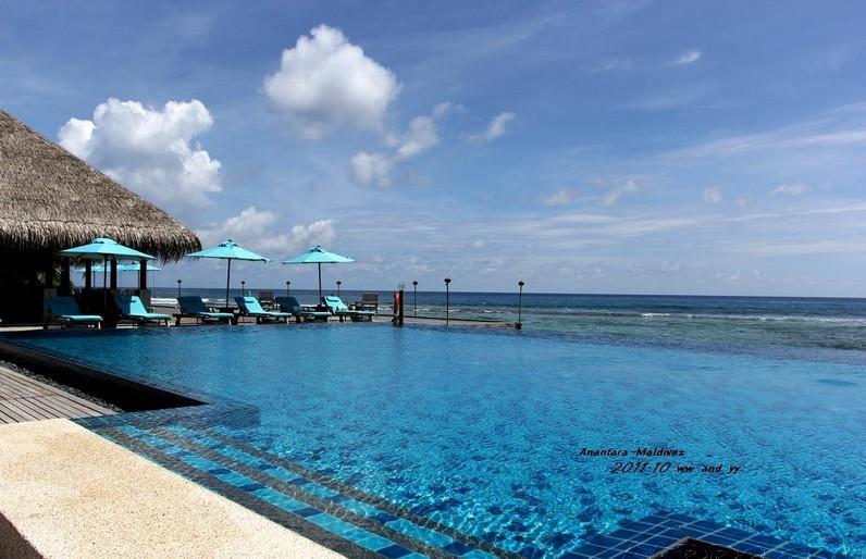 穿过富士餐厅,去薇莉岛码头的途中会经过迪古岛的无边游泳池,很多外国人喜欢在这里放松休息,
