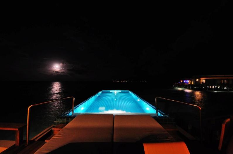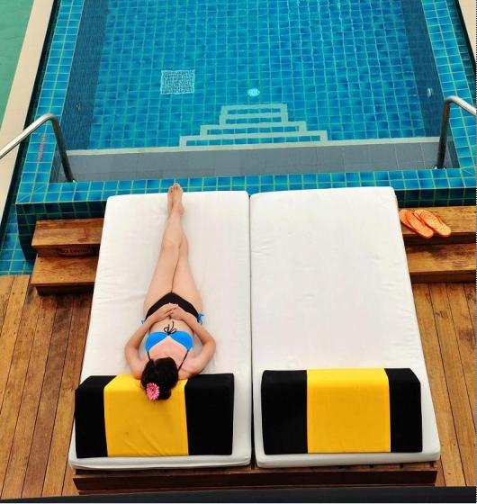 而且豪水的泳池上有个围栏,就没有无边的效果了