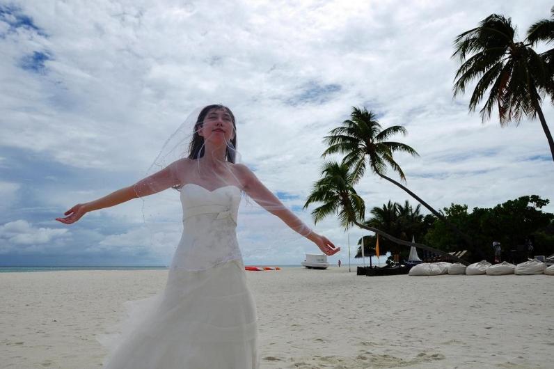 开始传婚纱了,美丽的教堂,美丽的海滩