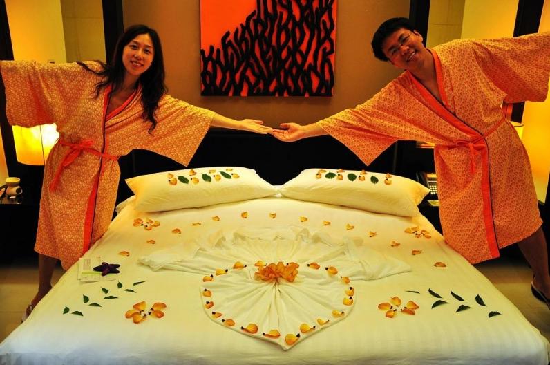 蜜月套餐包含蜜月果盘、花床和30分钟的SPA。