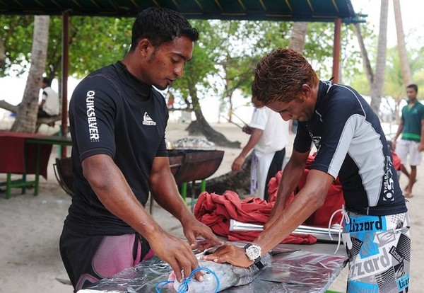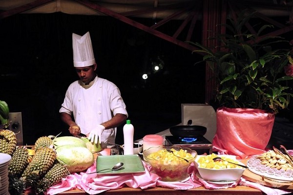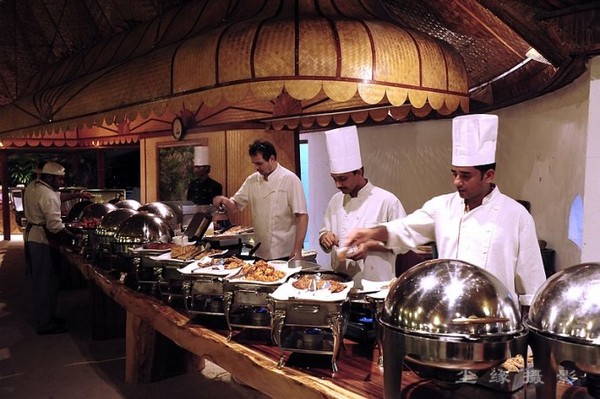 第二处位于餐厅后面,一大片平静的碧蓝海面,随着微风前后摇摆,是水上运动的胜地,好多人在此乘风破浪;第三处位于每间小茅屋的门口,由于面向西面,热情的太阳不断同我们的肌肤打招呼,是晒黑的好地方哦!
