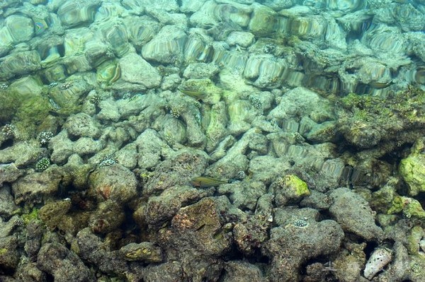 最好穿鞋下水,珊瑚礁很容易划伤脚。