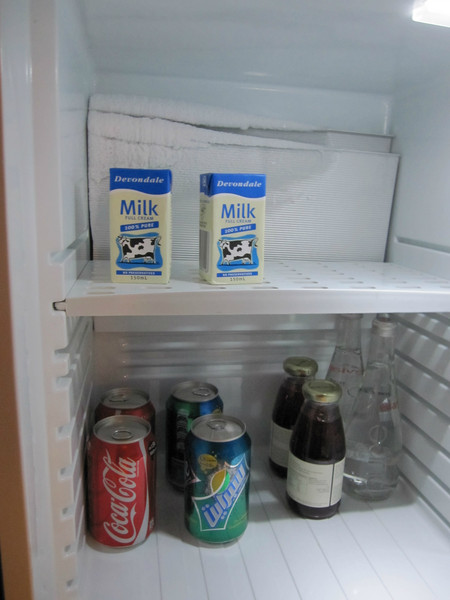 对了,水屋的游泳池要比沙屋的小,水深查了15厘米。冰箱里也有果汁牛奶依云水以及和平时喝的不一样味道的可乐雪碧,喝了每天都有补充的,水源相当充足,刚进去的那天,一大瓶水家4瓶矿泉水,两个洗手台上也各有一瓶……所以根本不用带水啊!