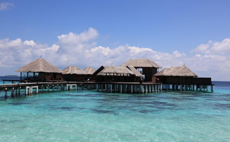 在黑夜里,我们只能看到美丽的星空,以及月色下浩瀚的印度洋,远处是星星点点的各个岛屿。经过40多分钟的颠簸,我们的船终于慢下来了,抬头一看,COCO PALM已经在我们眼前。上岛的一瞬间,面对美丽的夜景和满天的星空,以及不远处BAR里传来的乐队演奏声,我的疲惫之意顿消,而老婆已经兴奋、晕眩的到差点掉海里了。我们预定的豪华水屋,不知是不是人品太好,小黑直接给我们免费升级到超豪华水屋了。坐着电动车,穿梭在夜色下的棕榈树林中,真爽。在超豪华水屋住了2晚后,我们又转到了沙滩别墅,10月6号我们离开这个美丽的人间天堂,返回了繁琐的现实生活中。在此,把我们拍的一些照片发在这里与大家分享,尽管如此,那里的惬意生活是无法直接用照片表达出来的。下面就开始发图啦。(不然要挨板砖了)
