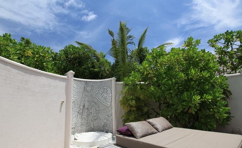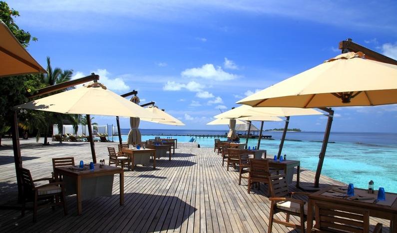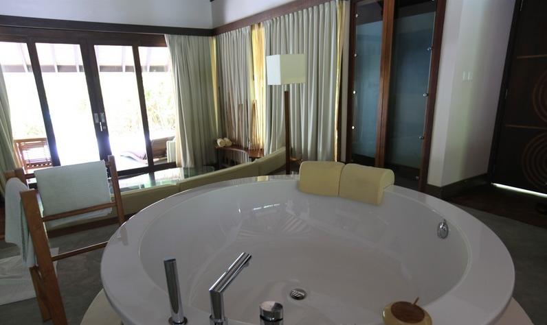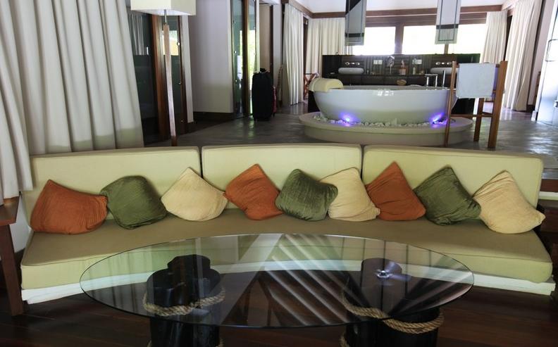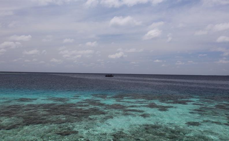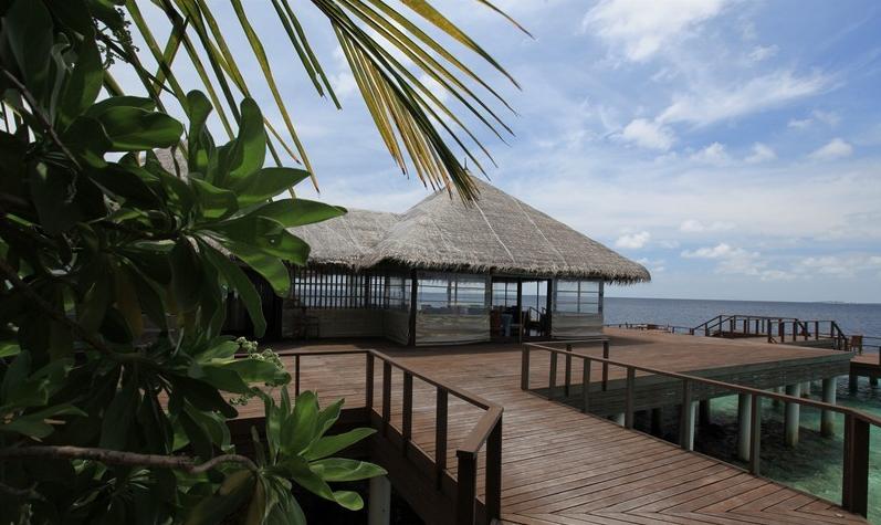 SPA和健身房就在我们水屋不远处,这成了我们阳台上的主要风景。再远处是豪水,那浮潜不错。