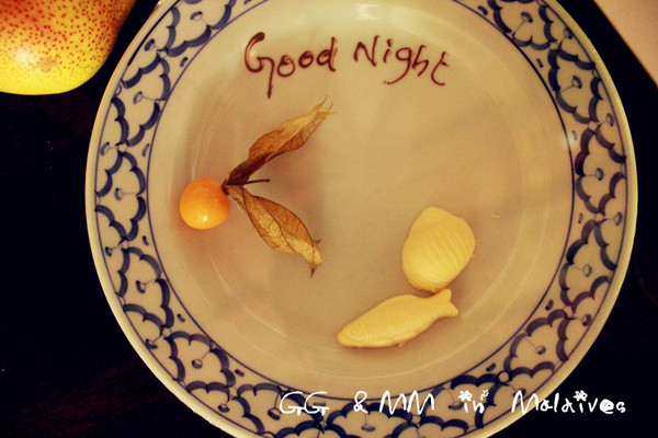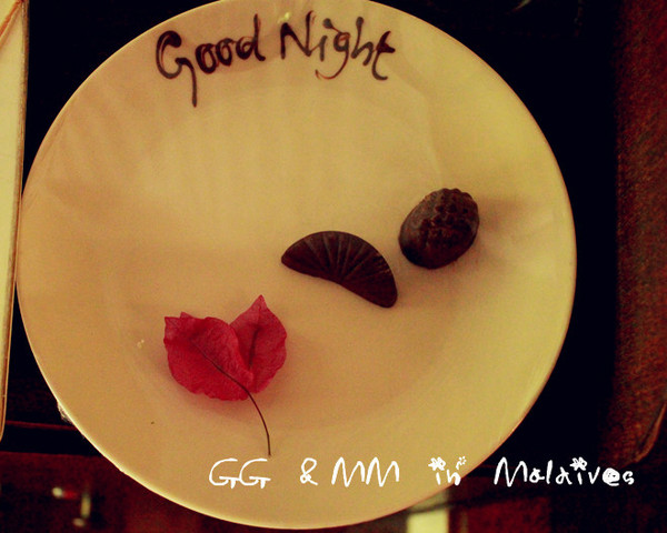 Ps:很不好意思的说,临走前一个晚上,MM想着舍不得走呀,真不想回国,惆怅呀,想着想着就哭了 ,哈哈,GG就在旁边一直安慰说,“我们还会再来马尔代夫的哈,不哭不哭了,你跟小朋友一样…”呵呵,