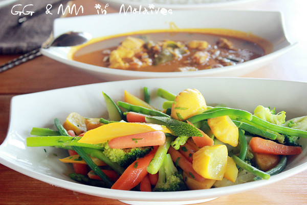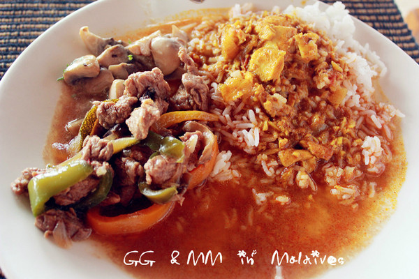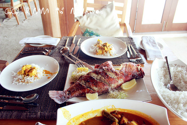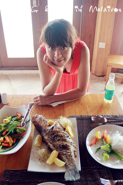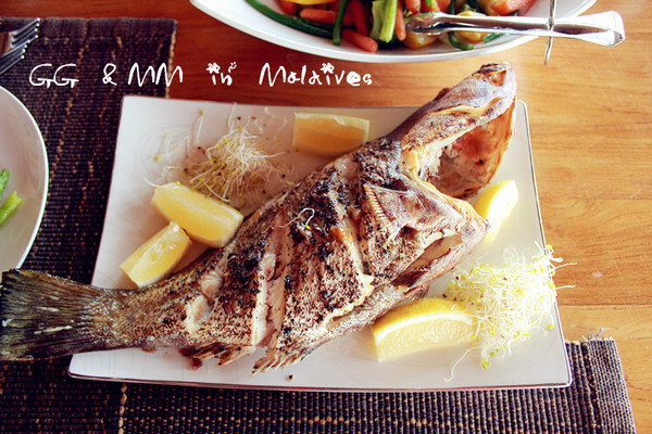 厨师给我们做了一个咖喱鱼,再烤了两条大的,配上蔬菜和米饭,就是一顿丰盛的午餐啦