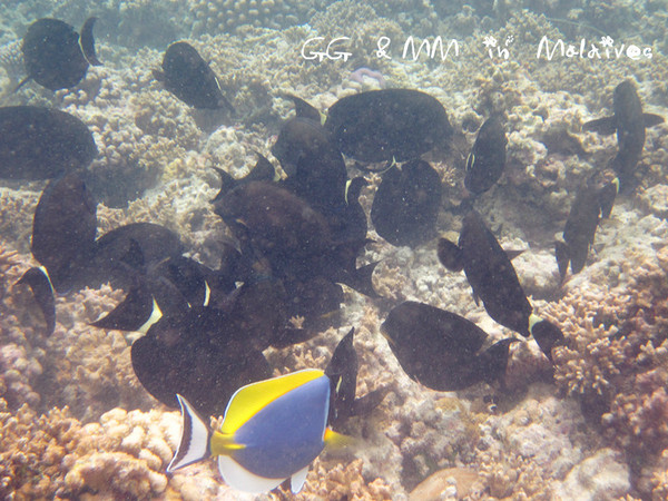 百度上说:99%晶莹剔透的海水+1%纯净洁白的沙滩=100%的马尔代夫,千万别惊讶。被99%海水所环绕的马尔代夫拥有数千种鱼类,这里是鱼的故乡。