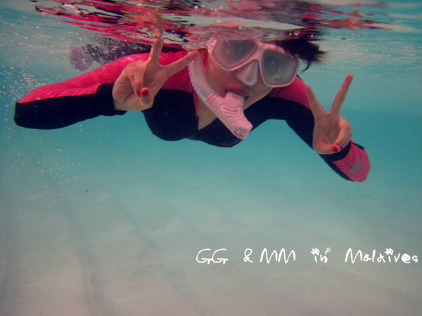 哈哈,GG在海下不时的给我比划是否OK?他怕我呼吸管有问题呀之类的不舒服。