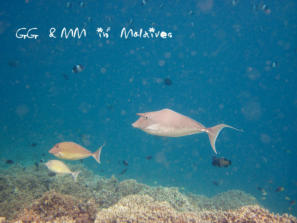后面几天,我们最爱的就是牵着手在海面上追逐各种大鱼,奇特的鱼,给它们拍照