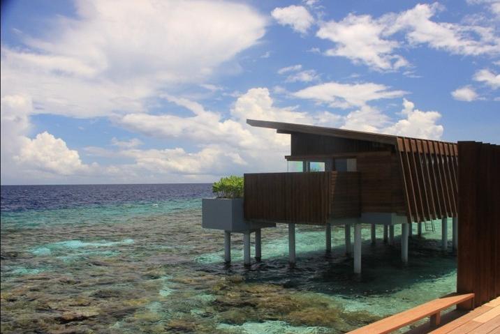 它位于热带岛屿Huvadhoo环礁北部,位于距马累国际机场南部约 400 公里。是“全球绿色联盟”在马尔代夫的第一个成员,这个从我们在岛上使用的循环水瓶就能看出来,样子挺好看的,搞得我们都想带走一个。。。。