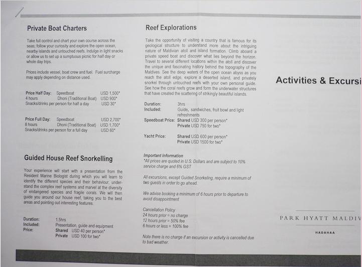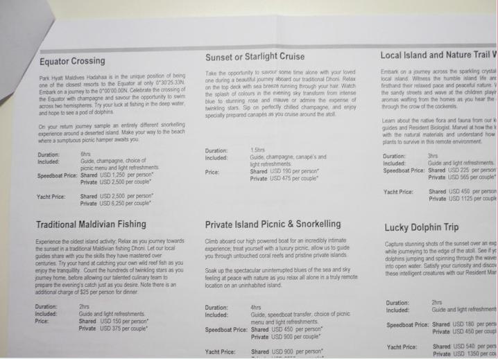 不知道版规是否允许提到代理公司的名字,但是这个代理真的很热心,服务非常周到。跟他之间的所有沟通都是通过email,开始我还奇怪用email多慢啊,可是没想到不论我是在什么时间给他发邮件(睡觉的时候我没有尝试过。。。)他都非常快的回复,让我怀疑他是不是把电脑绑在身上了!!!在距离出行还有两周的时间,马尔代夫很多岛屿都已经没有空房间了,jeff推荐我去伯悦哈达哈岛(Park Hyatt Maldives Hadahaa),因为这个岛比较远,而且价格较贵,属于奢华岛,有可能还有房间。谢天谢地,哈达哈有房间,而且还有很优惠的活动,赠送蜜月套餐。。。。。。天啊,太幸运了啊!!!我不得不再次佩服牛叉雪同学的功力啊!!!太牛叉了,我向你保证以后不会再掉队了!!!