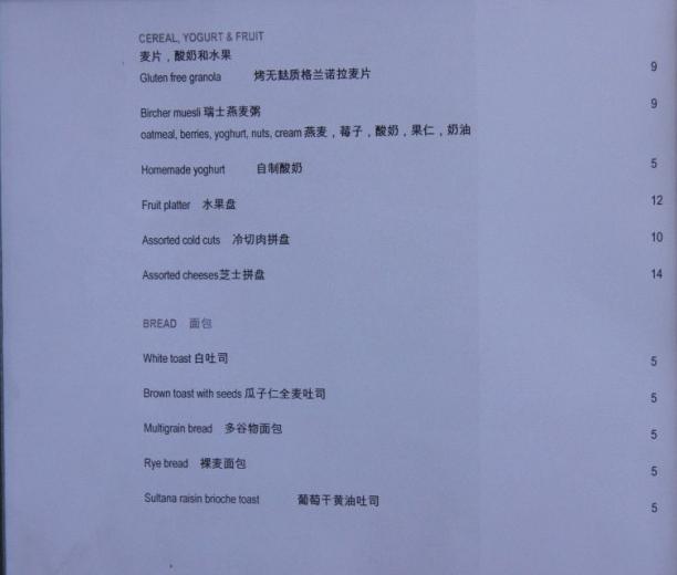 上传一下早餐的菜单