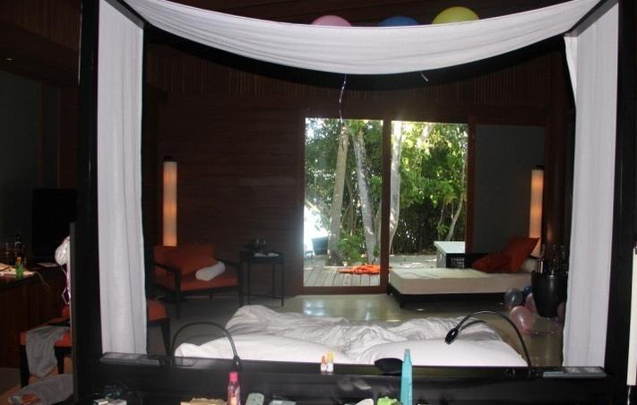 5月6日早上9:40我们坐上了首尔飞往广州的飞机,中午抵达了广州,办好了各种手续之后大概中午12点左右。广州飞马累的航班时间是16:30,这样我们大概需要在机场呆个4个小时。。。但是没想到的是广州飞马累的时间晚点了。。。大概晚上8点才飞。。。。到马累的时间已经是当地时间23:30分了。。。。太折腾了,害得我们的代理在机场等了我们4个小时。。。。好在南航的波音777拉了近400名旅客去麻袋,让马累的陆飞公司也不得不延迟自己的航班时间,国人实力的强大再次体现啊!!!!这样经过1个多小时的陆飞+1个多小时的快艇,哈达哈时间凌晨4点(哈达哈比马累快一个小时,马累比中国慢3个小时)我们终于到了dream island。。。。。实际上中国时间已经是6点了。。。。岛上的小黑见到我们直说good morning!good morning!真讽刺。。。。之后管家开着小车带我们去了31号沙屋,简单地介绍了一下之后,就识趣的离开了,因为我们太需要睡觉了,根据攻略我们给了他5美元。管家告诉我们,尽管我们花了很多时间才来到岛上,但是岛上美丽的风景很快就会让我们忘记旅途的劳累,这一切都是值得的!!!来些岛上的美图吧,然后再介绍可爱的哈达哈~