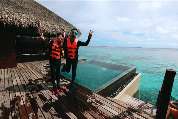 四、行程预定:马代的旅游海岛太多了,看得我眼花缭乱的,最后我选择了去年11月才新开发的阿雅达岛,这个岛距离马累四百多公里,需要坐内陆航班和快艇才能到达,所以岛上游客相对少些,而且我们对岛上的日落水上房、沙滩别墅以及浮潜环境都很满意,所以很快确定了这个岛。然后就是找代理询价和订机票,本来想选川航直飞马代的航班,但是川航的班次太少,而且是固定的6天往返,游玩时间短了些,所以最后选择了新航从成都出发,在新加坡转机飞马累,顺便可以在新加坡机场的免税店买些东西,最主要是因为新航的准点率高,服务很好(而且飞机餐也不错)。
