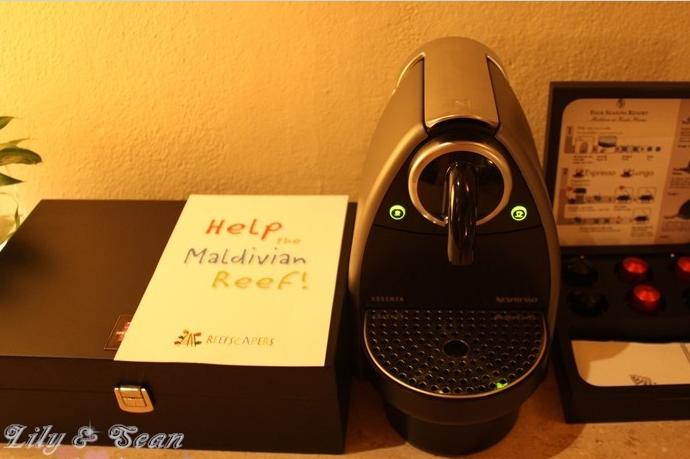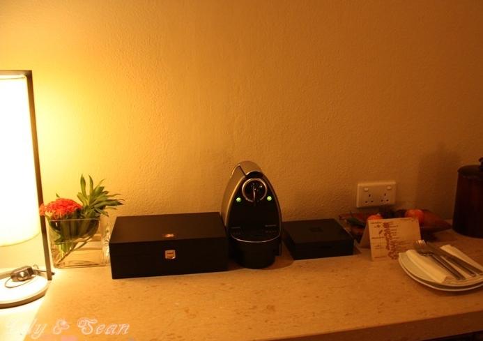 3、房间里的纯净水、咖啡、茶、牛奶都是免费的,水不够还可以随时与前台联系,很快会有人送过来。每天下午都会送新鲜的水果到房间。乘坐水飞、快艇上,小黑都会送上有柠檬味的冰毛巾和纯净水。