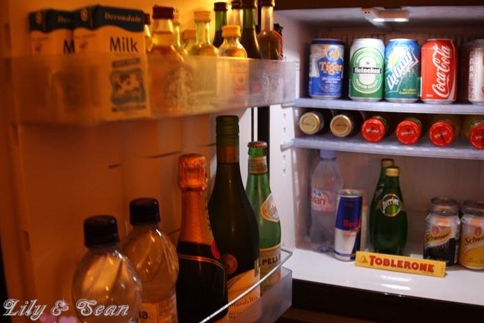 Mini Bar 最左侧的纯净水和牛奶是可以免费饮用的,而且会及时补充