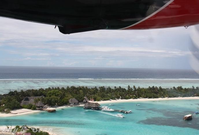 水飞上看到的景色,让人无比惊艳,马代就像是散落在印度洋上的一颗颗珍珠。经过40分钟,我们终于来到了四季的Landaa岛。
