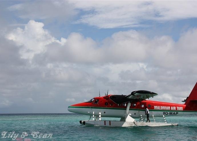 10:00用完早餐,丫头和小子就来到前台,等待10:15的水飞,飞往我们的Landaa,行李早已先我们一步运送到了快艇上。
