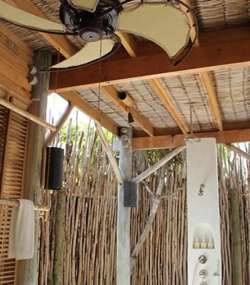 我们光着脚坐着观光电瓶车去往我们的沙屋——85号。