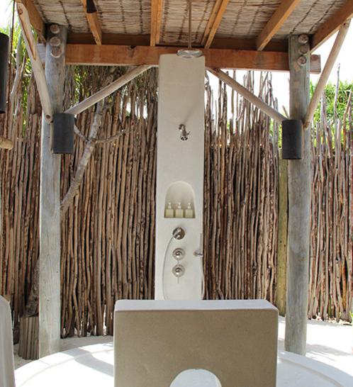 可以走这里的小路推开木栅栏的门进到后院冲个凉!