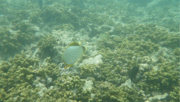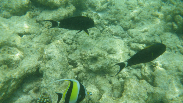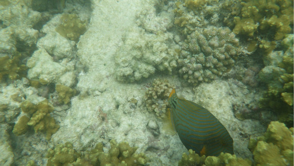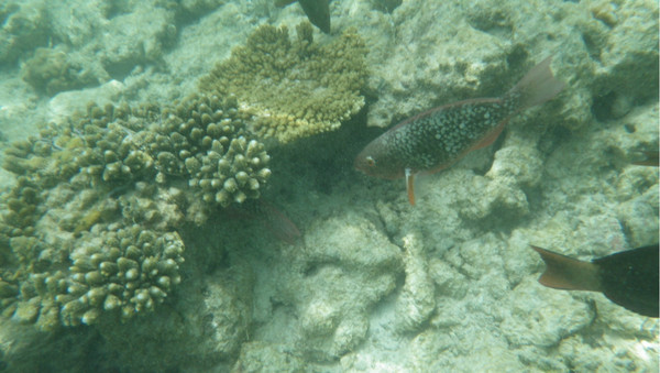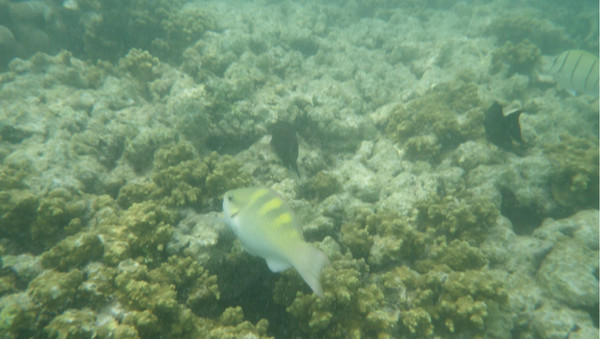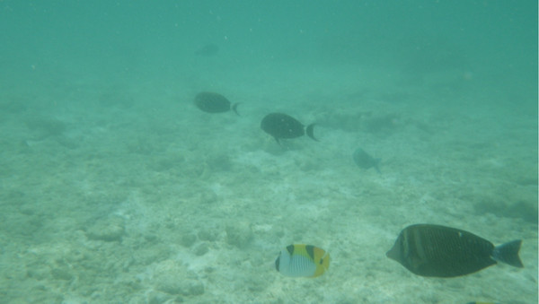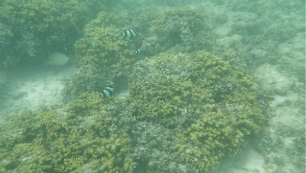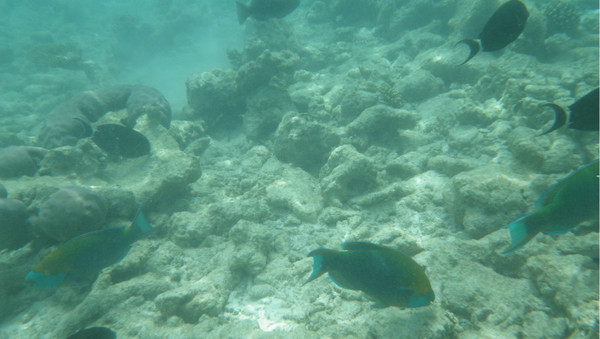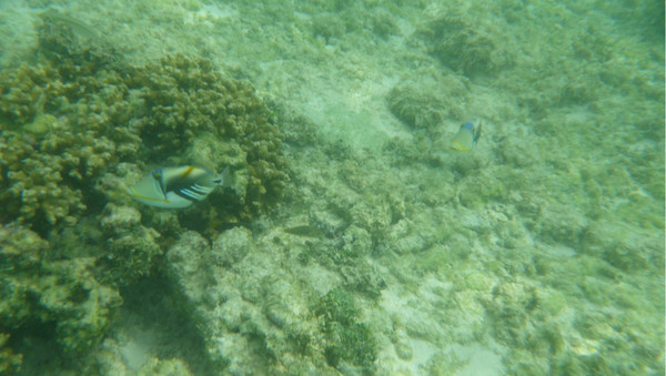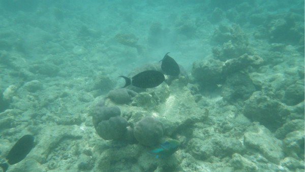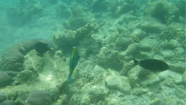 先发这一点,以满足大家的胃口,哈哈。话说浮潜点的鱼真的是好多,密密麻麻的向你身上冲过来,特别可爱。不过浮潜点的珊瑚礁也着实有点高有点大,从上面浮潜过去的时候还真有点担心会不会被划伤。总之浮潜点的鱼要比水屋下面的鱼大很多,而且数量也是多很多。