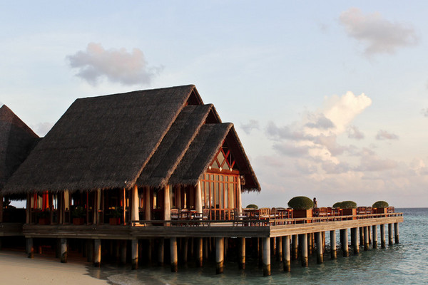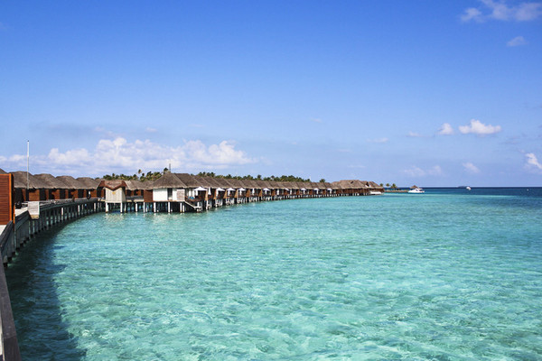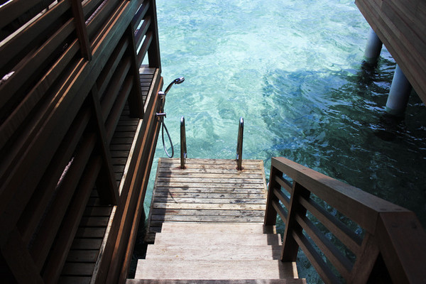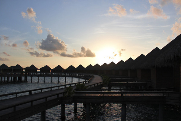 这是维拉沙鲁的水上屋,外观还不错,浅滩还看到一群小鲨鱼和好几条蝠鲼。