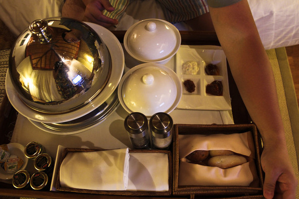 这天晚上是最后一晚的住宿了,我们决定点只龙虾送到屋里。我吃的津津有味,但猪鼠说这龙虾没有须子,而且壳儿有些发灰,不像是新鲜的,于是跟酒店打电话理论,最后居然把龙虾给免单了!哈哈!这次真是赚了!
