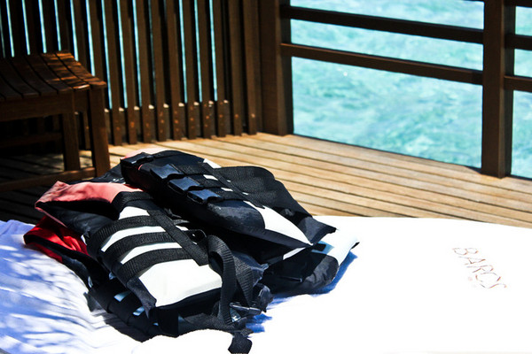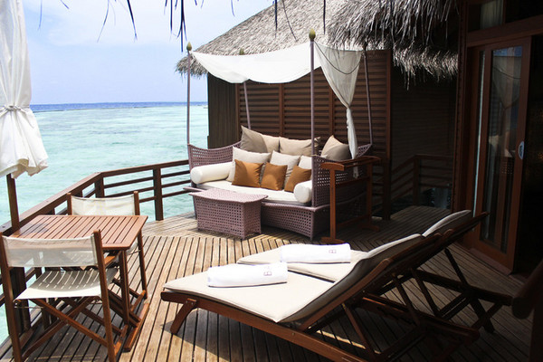 Baros岛在换房的前一晚就在门口放了一封信,说明第二天中午12点会有人帮助换房,我们只需等在房间里就可以。果然12点准时有小黑敲门,还有专门搬运行李的小黑进来拿行李。于是我们被带到了我们的water villa326号房间,经过交涉,我们始终不能换到可以观看日出或日落的房间,略有失望,但水屋还是很让人兴奋的。