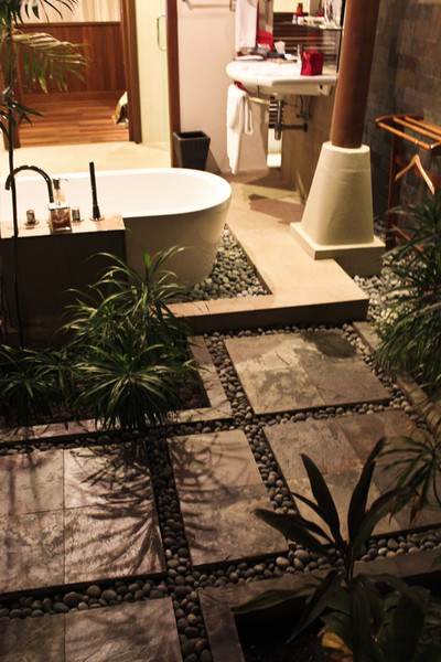 spa的服务人员口音实在听不懂,不过spa的环境很不错,错落的植物和小路,还有潺潺的流水,清雅的音乐也很配气氛,人已进入这个环境就立马放松了。之后我们被带到了一个2人的房间,房间的味道很特别,不是香味,但是闻着很舒服。我们躺下之后,女小黑(其实不是小黑,但分不出是哪里人)给我们戴上眼罩就出去了,我跟猪鼠还互相调侃,异常兴奋,殊不知一会儿按摩的时候他就睡的像死猪一样了。等了一小会儿,2个按摩师就进来了,她轻声问我需要哪种力度,当然这一切都是戴着眼罩后发生的,所以这一切都让人感觉很神秘,然后她就开始按摩了。她在我的脚和小腿上擦了精油,然后就是我们俗称的足部按摩,整个过程舒服、放松,让我想起《Friends》里菲比的职业就是按摩师,一点儿不觉得职业卑微,反而让人觉得专业和神秘。没过一会儿就听见猪鼠开始打呼噜,看来是按的太舒服了。猪鼠预定的1个小时足部,我是45分钟足部+15分钟头部。头部按摩很有意思,按摩师在我的头发上涂了好多椰子油,后来到香港之后,依然能闻到头发上重重的椰子油味儿。按摩结束后我才见到我的按摩师的样子,这样的设计可能也是尊重客人的隐私吧。之后我们俩吃了点心喝了姜茶就离开了。