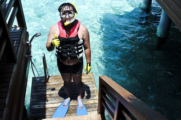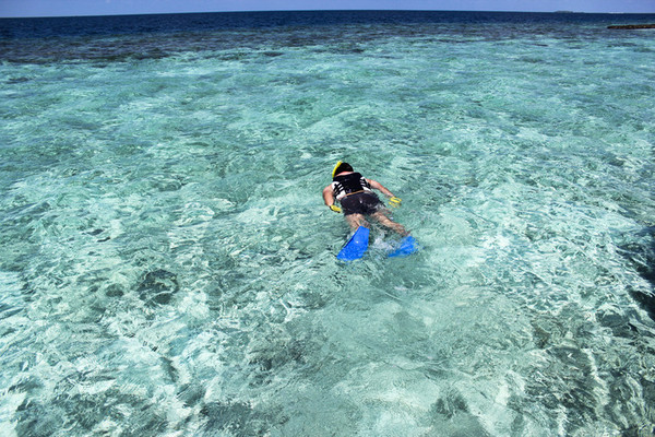 因为岛上浮潜的人都是穿脚蹼的,后来我们也租了脚蹼(免费的),不是很习惯,但在水里很省劲儿。