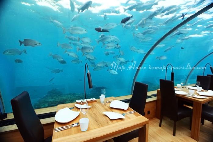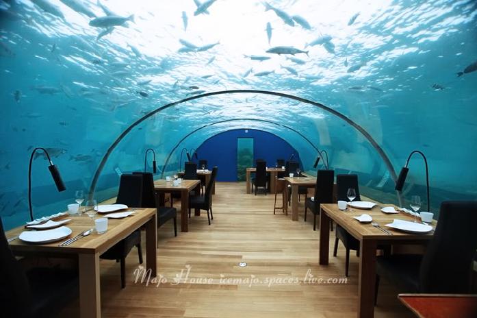 这个应该是世界上第一个,也是目前运转的唯一的一个透明海下的餐厅。Dubai Atlantis 酒店内的 Ossiano,虽然也有鱼可以看,但是那个只不过是一个巨大的水族馆而已。 而传说中的以色列的Red Sea Star, 也是真的在水下的,只不过消息很少很少,以至于我都不太确定它是不是还有在开放中。