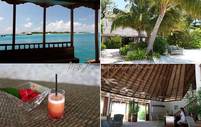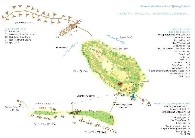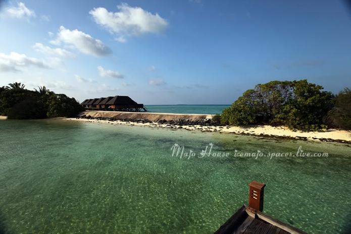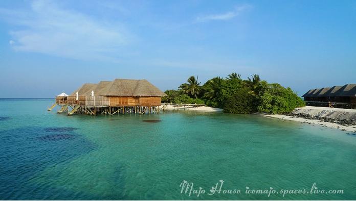 Rangali Island 是由两个小岛组成的,大岛上主要是沙滩屋和Spa Villa, 水下餐厅,还有潜水俱乐部等等;小岛上面主要就是Water Villa & Sunset Villa。两个岛有一条长桥连接,桥的中间正好就是水上飞机起飞降落的平台。