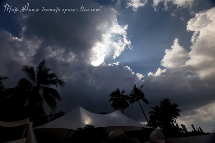 渐渐的人都冒出来了,岛上的服务生也出来重新摆桌子,清理沙滩椅上面的积水。