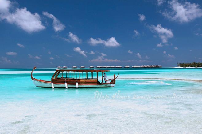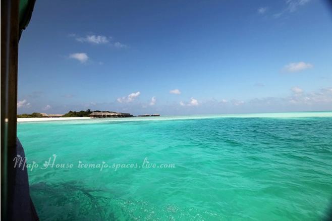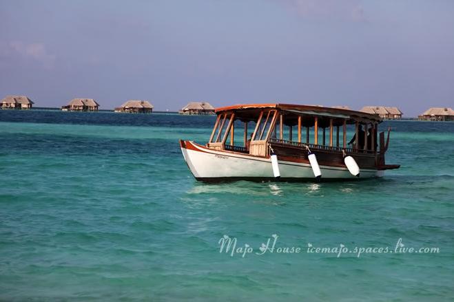 渡船的马达启动了,朝着机场的岛驶去。在这放眼四周看到的都是海水的地方,我期待看到绿松石般色泽的淡蓝调海水,期待着体验人生初次的水上屋经历