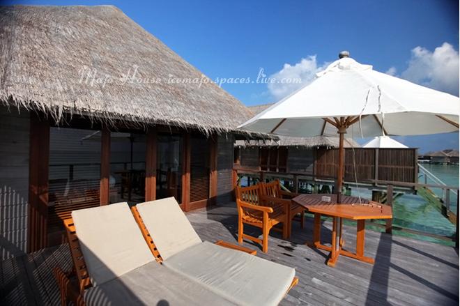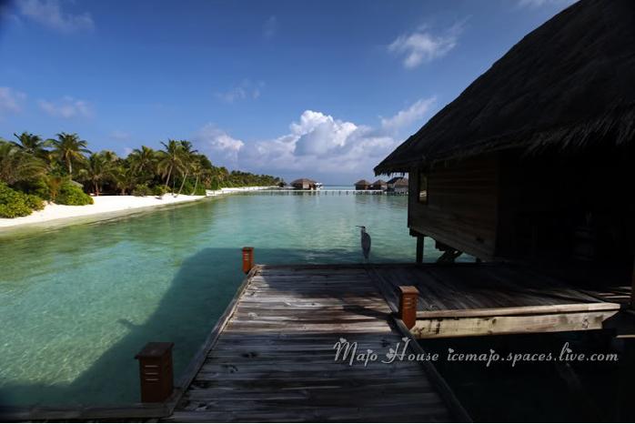 会向往水上屋还有五颗星星,也都是因为听说了这种贴心的服务多么的稀有。有私人管家的地方倒是有几个,除了马尔代夫,比如在杜拜,巴厘岛,泰国的有些顶级酒店也都有的。可是有水上屋还有私人管家的地方就少了,貌似我心目中的顶级奢华波拉波拉都还没有呢。Majo也都算是劳动人民知识分子出身的吧,哪里享受过啥管家的贵族待遇呢?最多就是看日剧的时候意瘾一下子说管家就是那个水岛Hiro级别的忠心耿耿的帅哥。