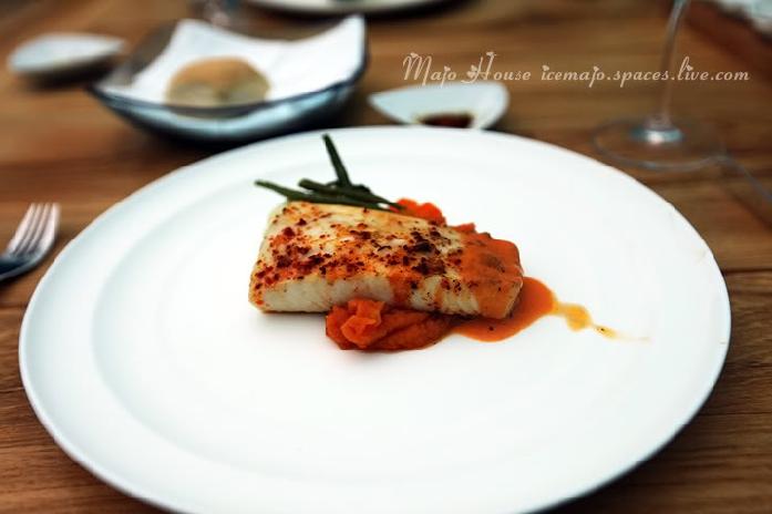 Pan Fried Black Cod Filet, Sweet Potato Puree With Maple Syrup, Tomato and Lemongrass Cream Sauce. 香茅番茄煎鳕鱼