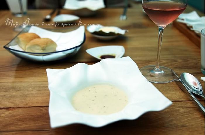 汤,Cauliflower and Mustard Soup, 菜花芥末汤。 虽然说是芥末,不过其实可能叫做奶油汤更确切点的。 我是完全没有尝出来芥末的味道,反而觉得很有奶油蘑菇汤的感觉。